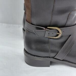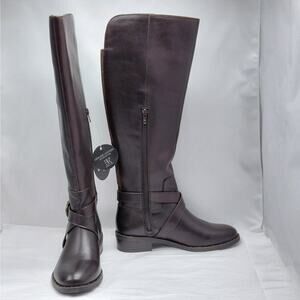INC Fadora Brown Leather Riding Boots Women’s 6M Knee High Zip Strap Detail Equestrian Western Coastal Cowgirl