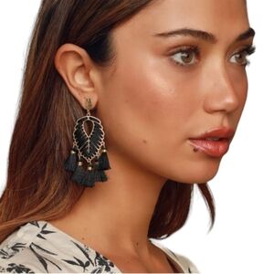 Brand new INC International Concepts Boho Beauty Gold and Black Tassel Earrings
