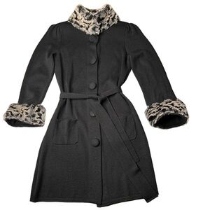 I.N.C. Faux Fur Animal Print Trim Black Button Sweater Coat Women's Size M