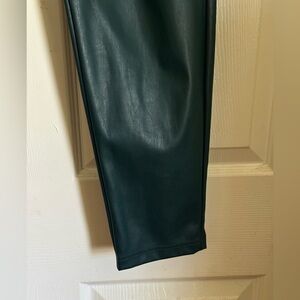 Stylish dark green faux leather leggings. Perfect for a chic look. Created for Macy’s, these pull-up leggings are an edgy addition to your wardrobe. Machine washable (gentle).