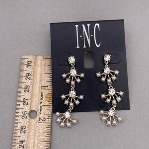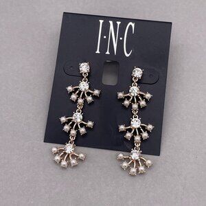 I.N.C Faux Pearl Crystal Dangle Drop Linear Earrings Post Back Closure