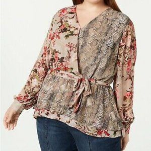 INC Faux Wrap Printed Top 1X