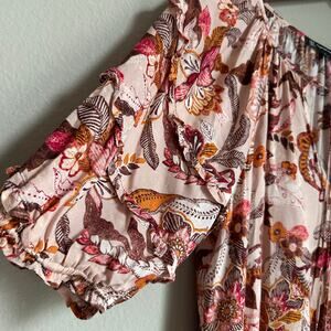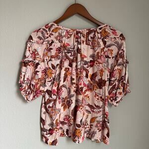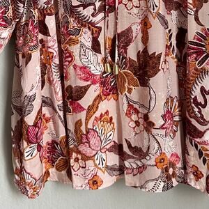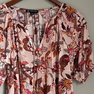 INC Floral Boho Blouse Tie Front V Neck 3/4 Balloon Ruffled Sleeve Cottagecore