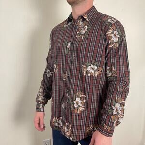 Elevate your wardrobe with this unique maroon floral dress shirt from INC! This classic piece is brand new with tags and ready to make a statement. The lightweight and breathable fabric ensures all-day comfort.
