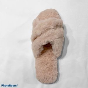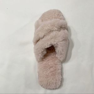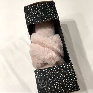 INC Fuzzy Furry Plush Crossband Slippers Pink NWT