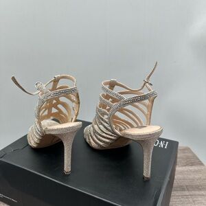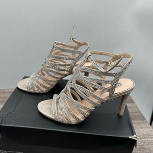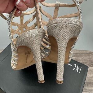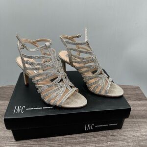 INC Gawdy sparkle womans champagne strappy evening prom special event sandal. Excellent preowned condition