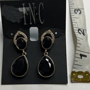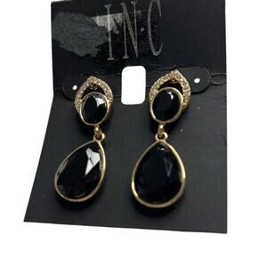 INC Gold Drop Dangle Earrings w/ Rhinestones & Black Gemstones, NWT