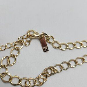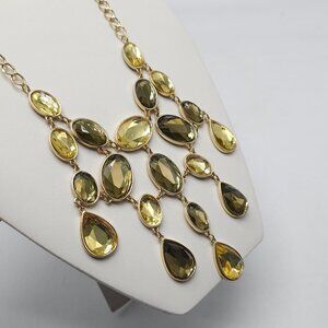 INC Gold Tone Statement Necklace Multi-Tiered Teardrop Oval Faux Gemstones