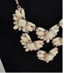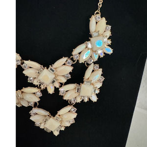 INC Gold Tone and Crystals with Ivory Colored Faux Stones 16" with 3" Extender