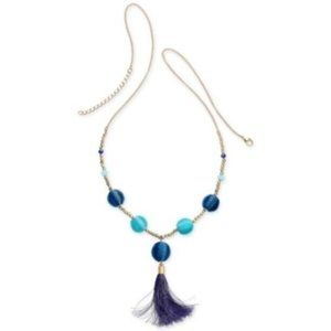 I.N.C. Gold-Tone Bead & Wrapped Ball Long Tassel Necklace, 34" + 3" extender NWT