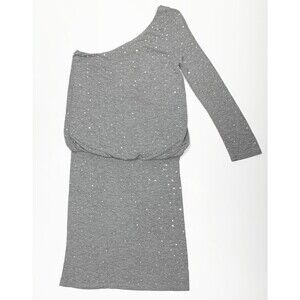 INC Gray One Shoulder Dress w/ Silver Sparkling Embellishments Size Small - Flaw