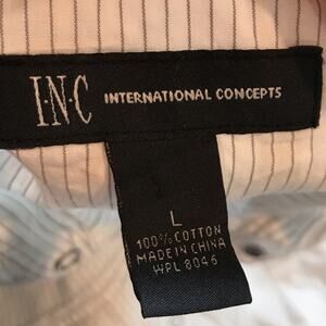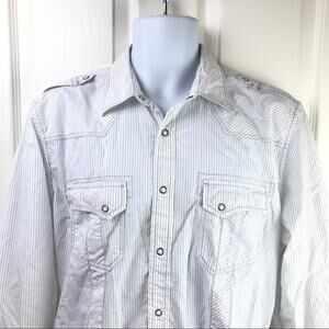 INC Gray White Pinstriped Snap Front Shirt Sz L