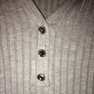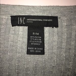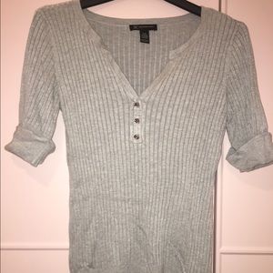 Three quarter sleeve top. From Inc. Cuffed sleeves. 3 faux-Button jewels. Light grey. Size is Petite Medium. Super cute and great condition as it was only worn once.