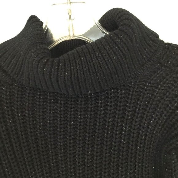 INC Heavy Turtleneck Sweater Metallic Flecks Bulky Knit Women's Size Large Black