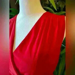 This stunning red maxi dress from INC Heritage is a must-have for any fashion-forward woman. With a flattering V-neckline and sleeveless design, it's perfect for any occasion, from formal events to cocktail parties. The dress is made from a blend of polyester and spandex, ensuring both comfort and style.