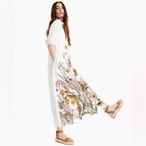 INC INTERNATIONAL Bella Botanical Cotton Printed Puff sleeve Maxi Dress small NWT