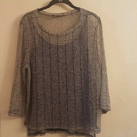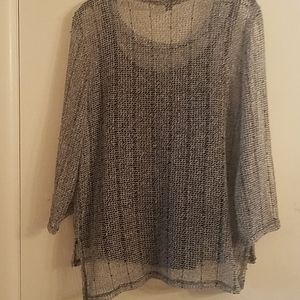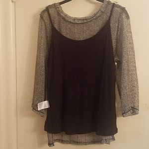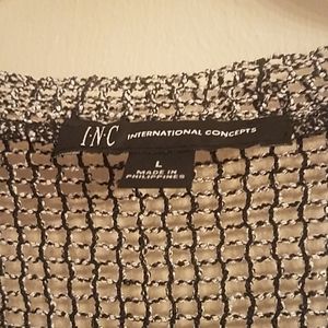 INC Top, size large, Perfect for after hours with a Pair of Black Pants, Mesh like material with some Sequins and a Camisole, color Black and White, in Excellent condition, like New.