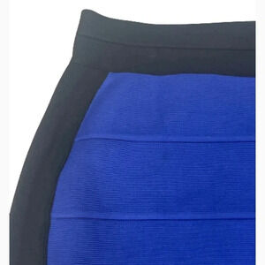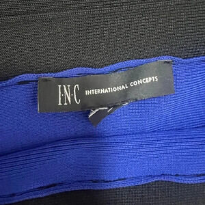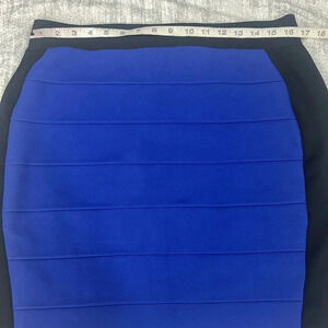 Inc international concept mini body con skirt ribbed stretch blue color block trim in black no size tag see Measurements. Excellent condition
