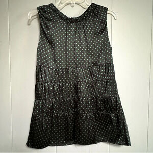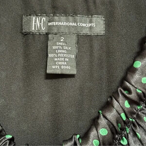 INC INTERNATIONAL CONCEPTS 100% Silk Sleeveless Top Black Green Polka Dots Sz 2