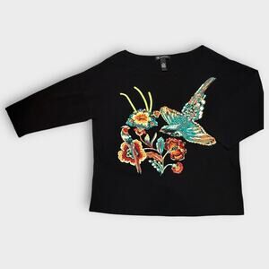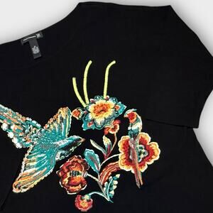 INC INTERNATIONAL CONCEPTS BLACK FLORAL BIRD EMBROIDERY SWEATER XL