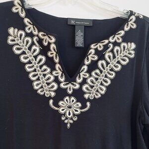 INC INTERNATIONAL CONCEPTS Black V-Neck Long Sleeve Boho Knee Length Dress Sz M