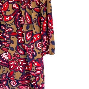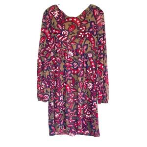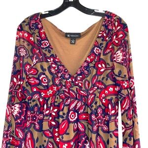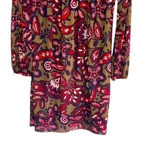 INC Size Medium Woman's Brown Red Navy Blue Floral Long Sleeve Tunic Dress