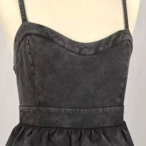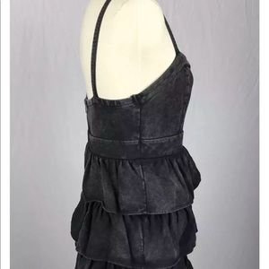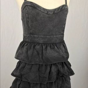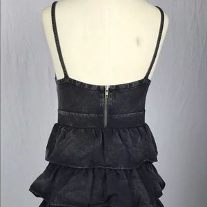 Inc ruffled mini dress. Thick and comfy material. Black with a manufactured worn / washed look. Spaghetti straps and zipper on the back. Material can stretch quite a bit. Size M.