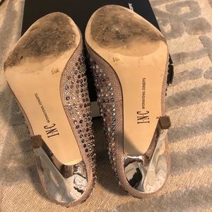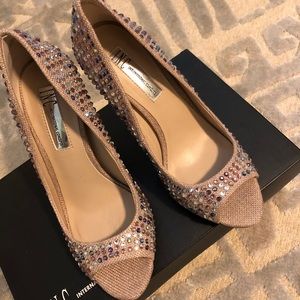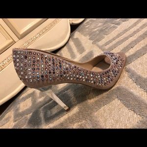 Jema2nat Bu Natural With Clear Pink And Silver Crystals Pumps.
