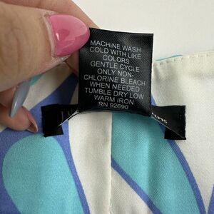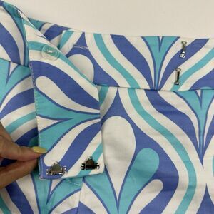 Add a pop of color to your wardrobe with these multicolor geometric print shorts by INC International Concepts. Featuring a hook and eye closure, these shorts are perfect for any occasion whether it be for travel, parties, casual wear, or work. Made with a blend of spandex and cotton, these shorts are lightweight, breathable, and stretchy, ensuring a comfortable fit all day long. The flat front design and mid-rise waist provide a flattering look, while the pockets add functionality. Ideal for summer, fall, and spring, these chino-style shorts are easy to care for and machine washable. Available in size 6 with a waist size of 31 inches and an inseam of 5.5 inches.