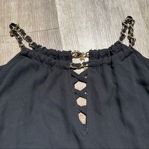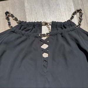 INC INTERNATIONAL CONCEPTS CHAINED HALTER OFF THE SHOULDER TOP.