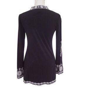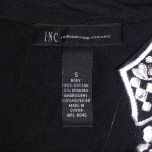 INC INTERNATIONAL CONCEPTS TUNIC TOP EMBROIDERED SIZE SMALL (S) BLACK & SILVER