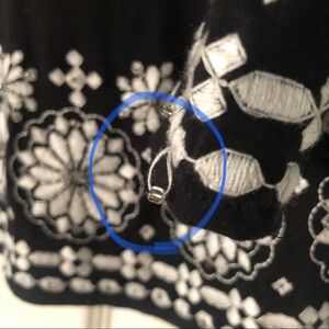 INC INTERNATIONAL CONCEPTS TUNIC TOP BLACK WITH WHITE AND SILVER EMBROIDERY AND BEADS. Size S. Great dressed up or down or for use as a swimsuit coverup. Has some loose beads and a spot on the left side and Some of the beads are also missing but it’s not noticeable see photos. See photos for details on measurements. Please ask any questions prior to purchase. Bin-A.