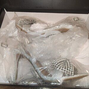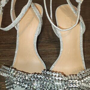 Rhinestone bows bring glamorous sparkle to slender ankle straps and sleek stiletto heels in the gorgeous Nemmzi sandals from INC International Concepts. 3-3/4" stiletto heel Round-toe ankle-strap dress sandals with adjustable buckle closure Embellished bow detail at strap Cushioned insole, arch support, memory foam, breathable lining and flexible, slip-resistant sole for added comfort Created for Macy's Fabric upper; manmade lining; TPR sole Imported
