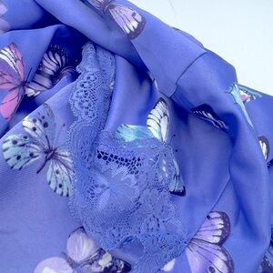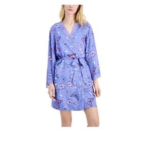 Lace trim adds a pretty feminine touch to this super-soft butterfly-print wrap robe by INC International Concepts®.