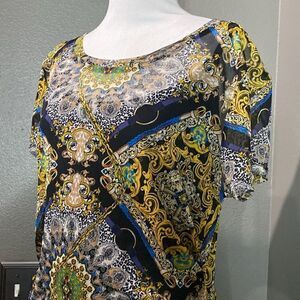 INC INTERNATIONAL Concepts Sheer Mesh Short Sleeve Top Ruched Sides