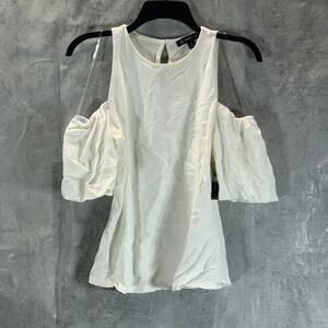 INC INTERNATIONAL CONCEPTS Women's Washed White Cold-Shoulder Balloon Sleeve Top SZ M