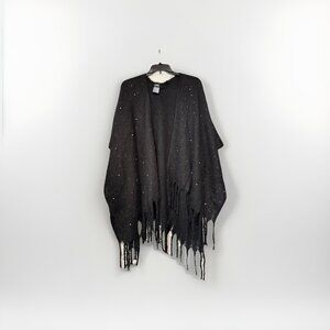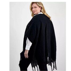 INC Int. Concepts embellished fringe open front ruana poncho topper - Black