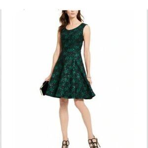 INC Internation Concepts Emerald Green And Black Lace And Sequin Cocktail Dress