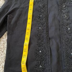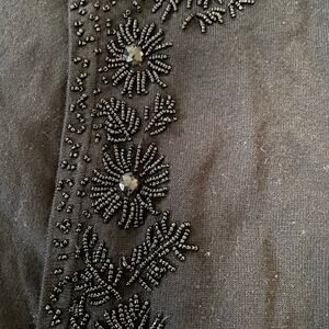 Beautiful Black Beading on Black Soft open front Cropped Cardigan. Ladies size small. Smoke free pet free home. Like new.