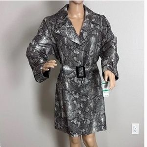INC International Concept Snake Embossed Snap Front Buckle Belt Rain Coat size L