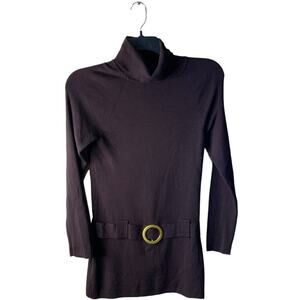 INC International Concept Sweater Women M Knit Tunic Mock Neck Belted Casual Tops