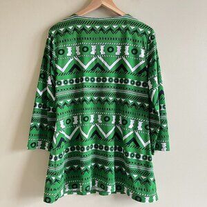 INC International Concept V Neck 3/4 Sleeve Blouse Top Green Aztec Print Size L