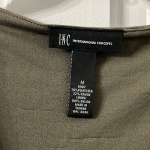 INC International Concept camo burn out long sleeved dress & shoulder appliqué
