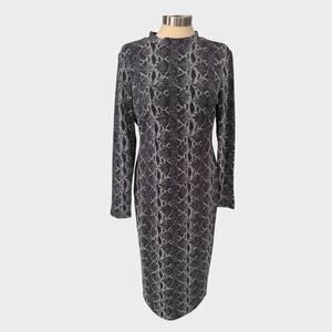 INC International Concepts 10 Mock Neck Dress Metallic Reptile Print Black