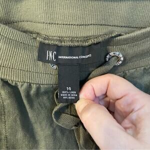 INC International Concepts 100% linen Green Joggers with Elastic Waistband