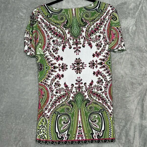 INC International Concepts 1X Shirt Top Green Paisley Cap Short Sleeve V Neck