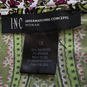 INC International Concepts 1X Shirt Top Green Paisley Cap Short Sleeve V Neck Stretch