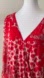 This relaxed blouse features a striking red and white pattern, complemented by a notched collar, and long sleeves with bell detail. Crafted for comfort and style, it offers a unique mosaic-like design that adds a touch of elegance to any outfit.