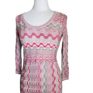 INC International Concepts 60s Retro Knit Gypsy Hippie Dress Women's M Pink