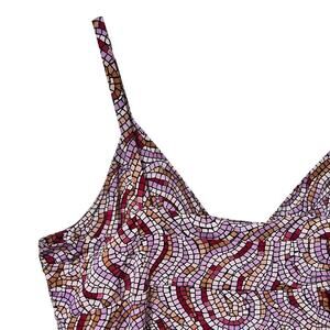INC International Concepts Abstract Jersey Babydoll Tank Top Size L Pink Y2K
